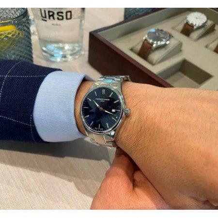 FC-220NS5B6B שעון יוקרתי לגברים של פרדריק קונסטנט | דגם ספורטיבי אלגנטי בלוח כחול מהמם | לוח זרחני כולל שנתיים אחריות יבואן רשמי | Frederique Constant Classics Quartz Blue 40mm. FC-220NS5B6B