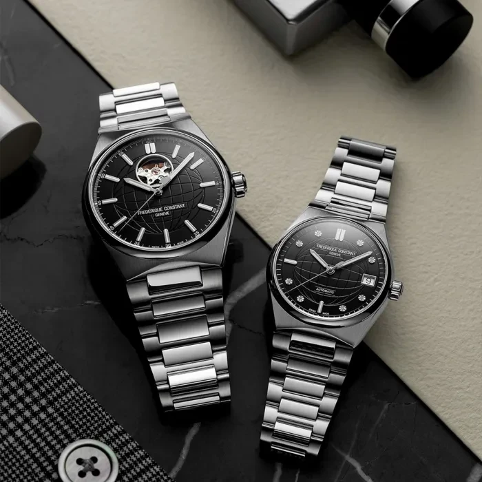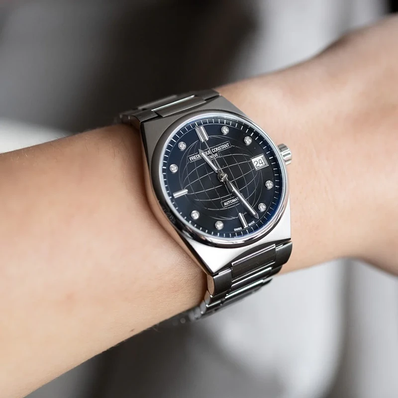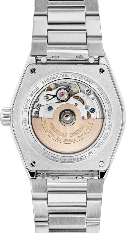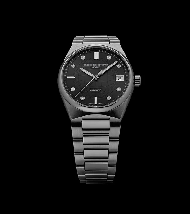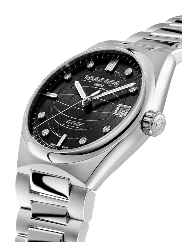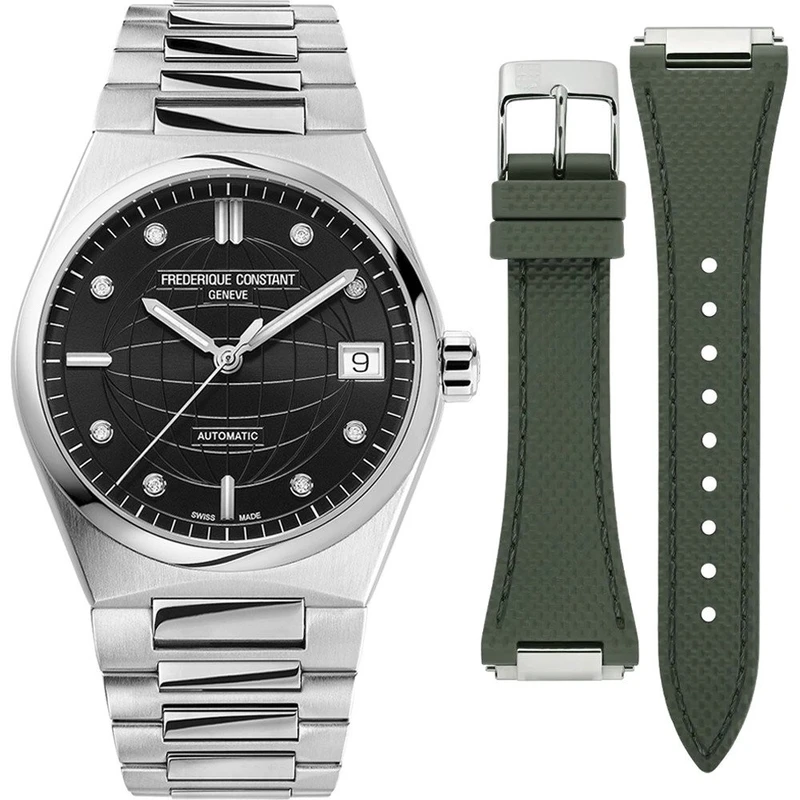 FC-303BD2NH6B שעון יוקרה לאישה של פרדריק קונסטנט דגם משובץ יהלומים בלוח שחור | מנגנון אוטומטי כולל רצועת סיליקון נוספת | שנתיים אחריות יבואן רשמי | Frederique Constant Highlife Ladies Automatic FC-30