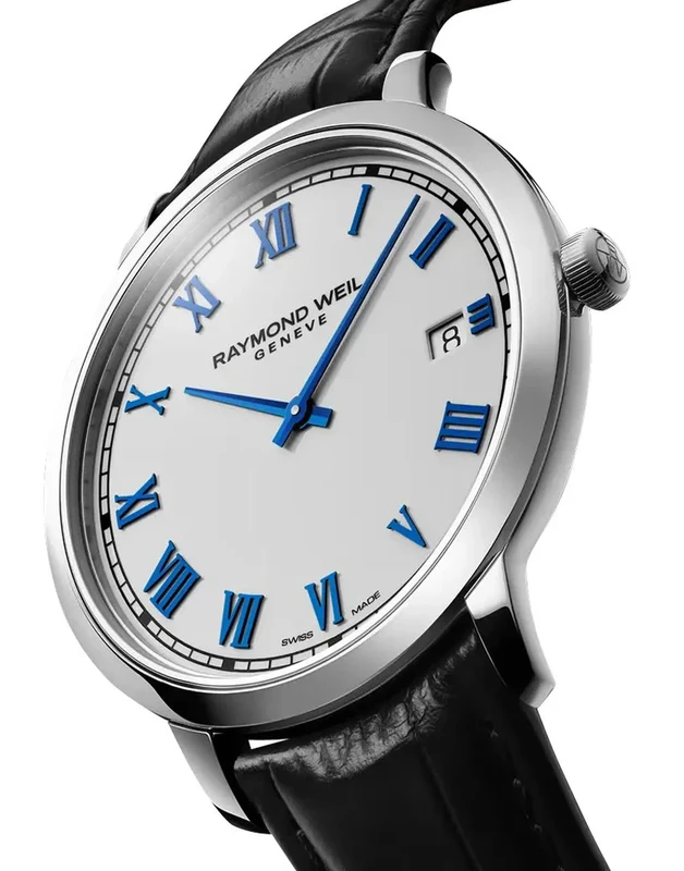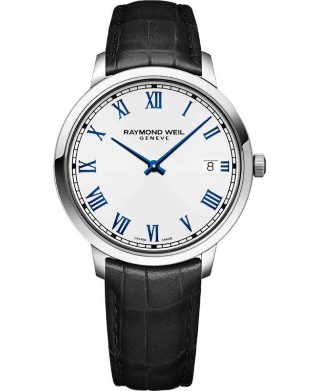 5585-STC-00353 שעון ריימונד ווייל לגברים מסדרת טוקטה | דגם אלגנטי דק וקלאסי בלוח לבן עם ספרות רומיות כחולות שנתיים אחריות יבואן רשמי | Raymond Weil Toccata Quartz Watch | 5585-STC-00353