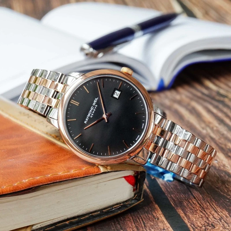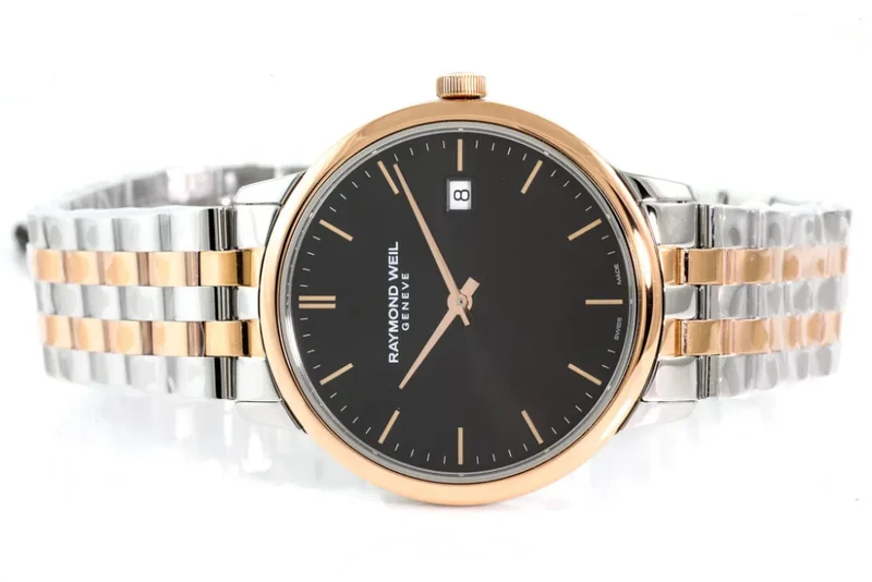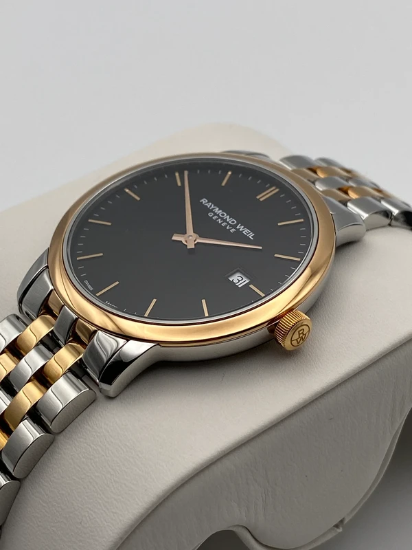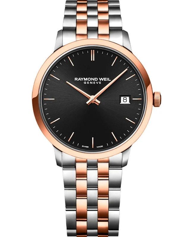 5485-SP5-20001 שעון יוקרתי לגברים של ריימונד ווייל דגם טוקטה רוז גולד משולב | לוח שחור כולל תאריכון | Raymond Weil Toccata Quartz Watch | 5485-SP5-20001