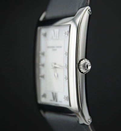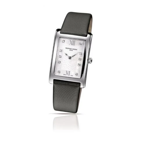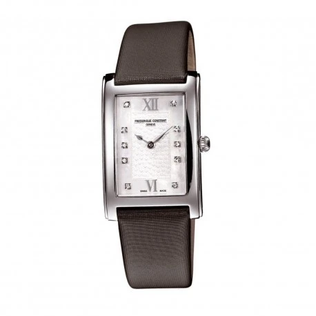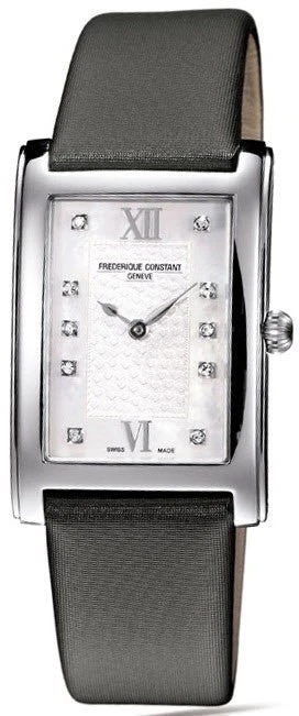 FC-200WHDC26שעון מלבני יוקרתי לאישה של פרדריק קונסטנט שוויץ | דגם בלוח פנינה משובץ 10 יהלומים | רצועת עור | שנתיים אחריות יבואן רשמי | frederique Constant Carree Collection Watch FC-200WHDC26