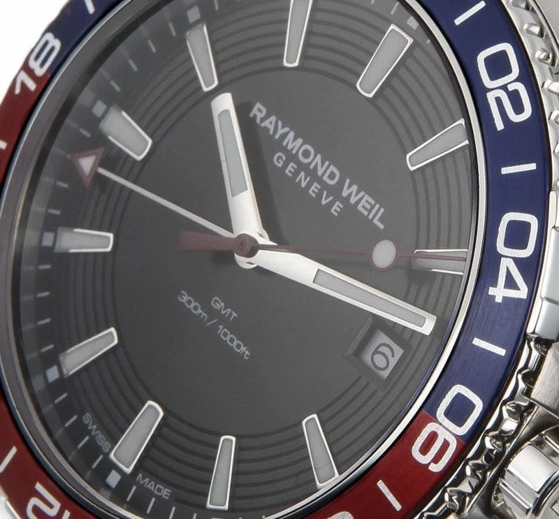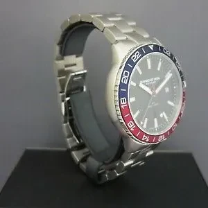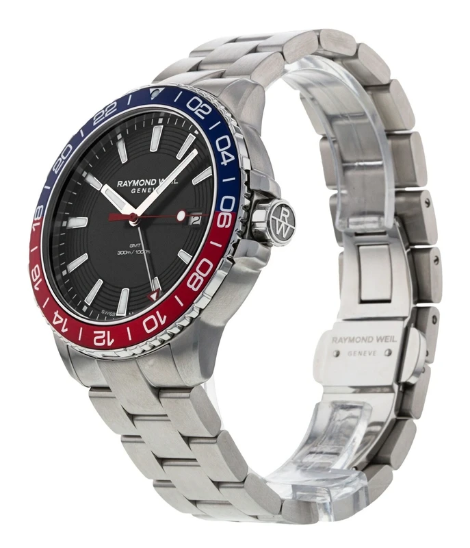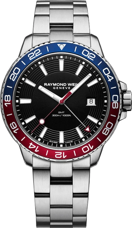 8280-ST3-20001 שעון יוקרתי לגברים מסדרת טנגו | דגם GMT שווצרי בבאזל ''פפסי'' כוחל אדום | 300 מטר כולל שנתיים אחריות יבואן רשמי | Raymond Weil Tango GMT Men's Watch 8280-ST3-20001