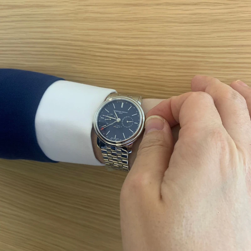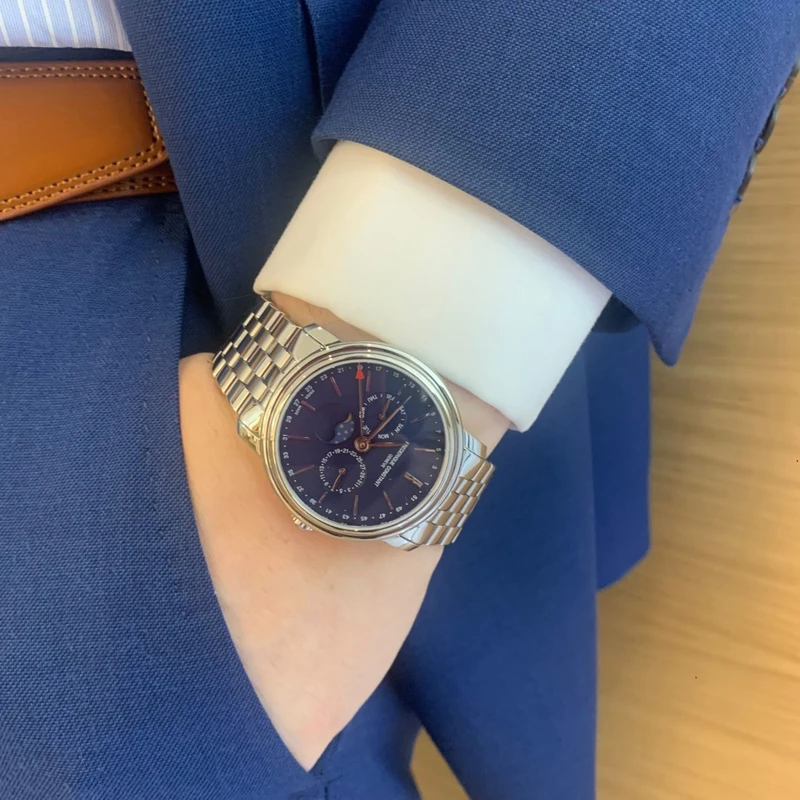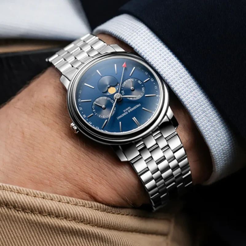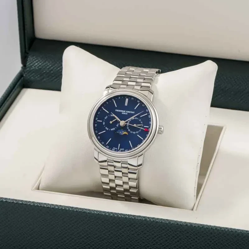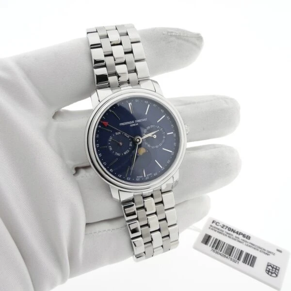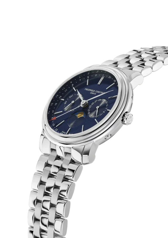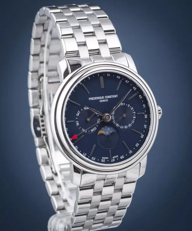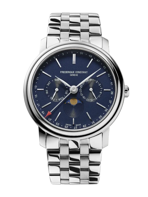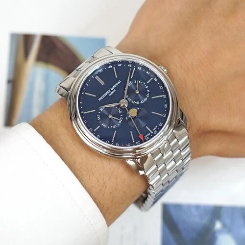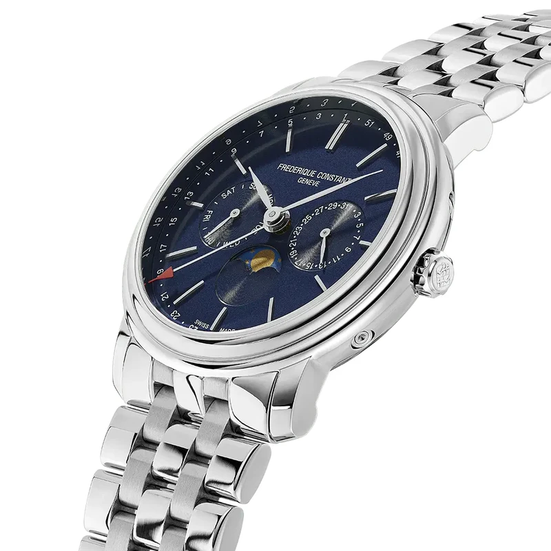 FC-270N4P6B שעון יוקרתי לגברים של פרדריק קונסטנט קלסיק | ביזניס טיימר בלוח כחול עם תצוגת ירח | שנתיים אחריות יבואן רשמי Frederique Constant Classics Index Business Timer FC-270N4P6B