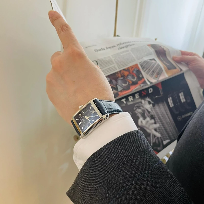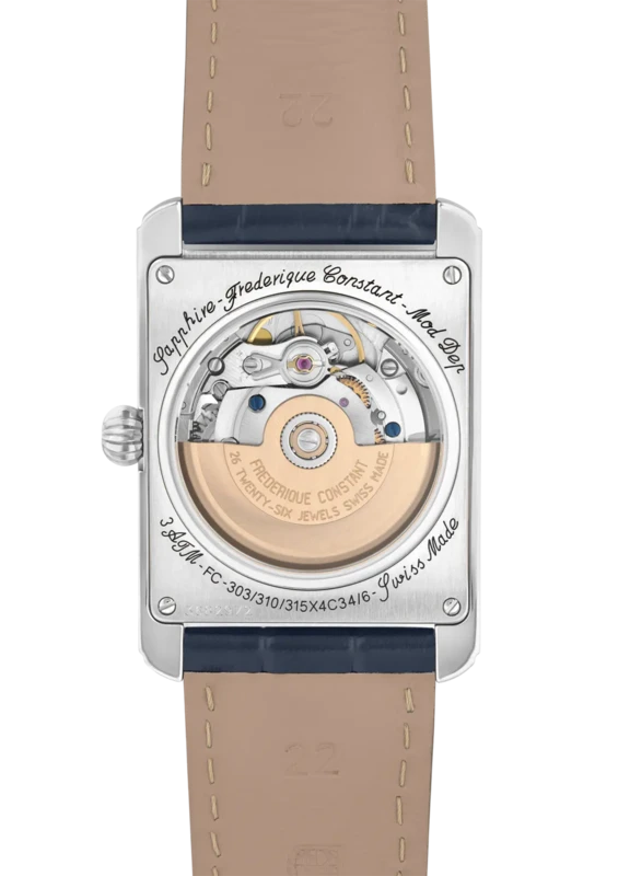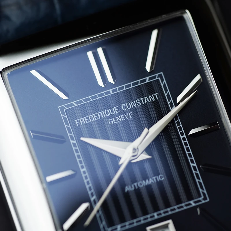 FC-303N4C6 שעון מלבני של פרדריק קונסטנט לגברים | דגם אוטומטי מהסדרה החדשה | שעון אלגנטי בלוח כחול עם רצועת עור | שנתיים אחריות יבואן רשמי | Frederique Constant Men's 30mm Stainless Steel Automatic Wat
