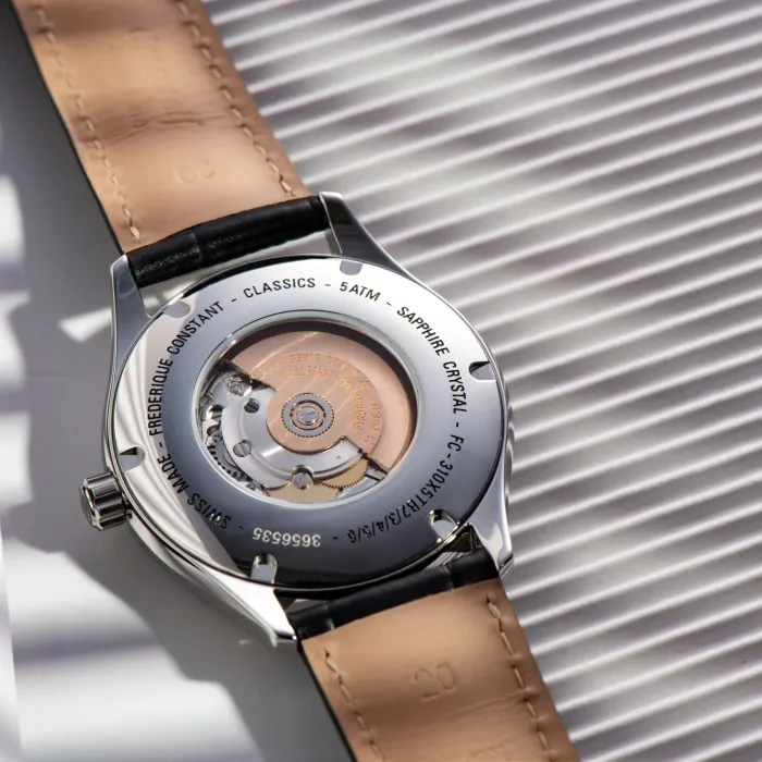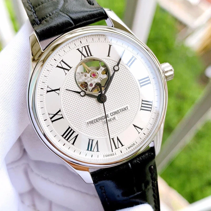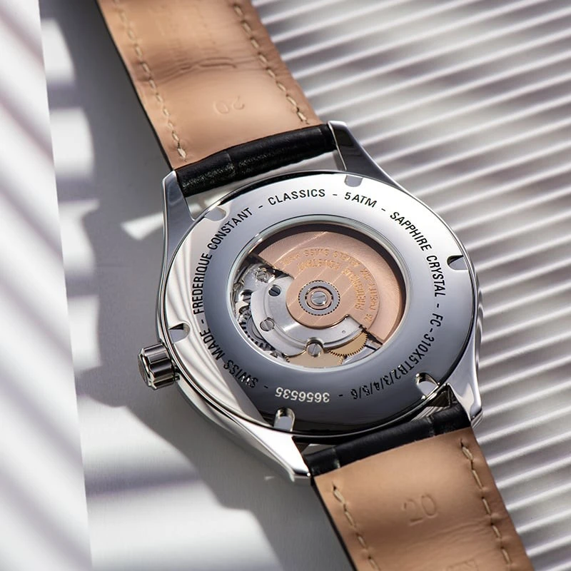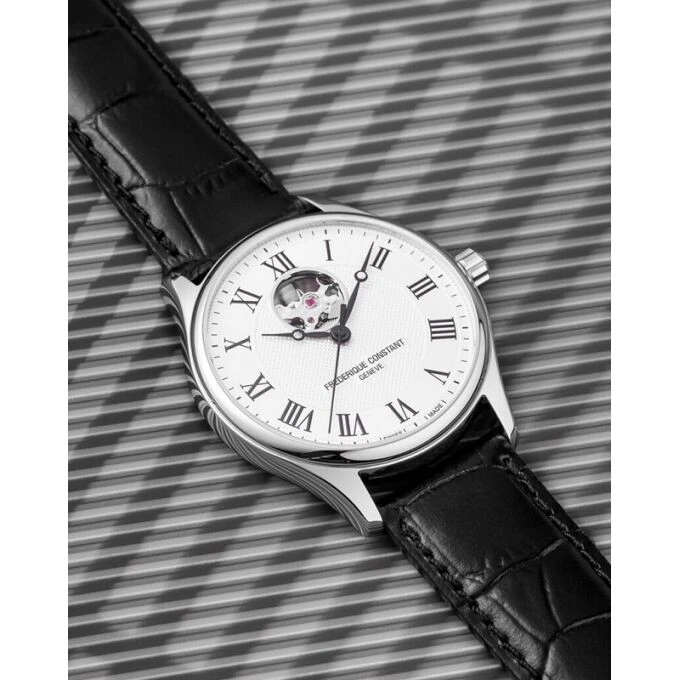 FC-310MC5B6 שעון אוטומטי מיוחד לגברים של פרדריק קונסטנט שוייץ| דגם לב פתוח עם לוח לבן רומי מהמם | רצועת עור | שנתיים אחריות יבואן רשמי | Frederique Constant Classics Heart Beat Automatic FC-310MC5B6