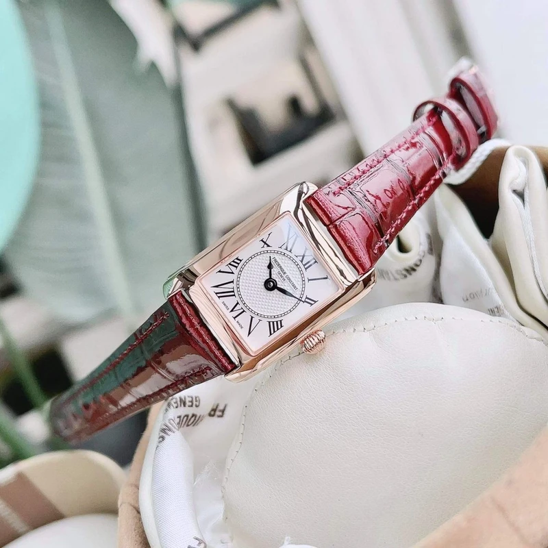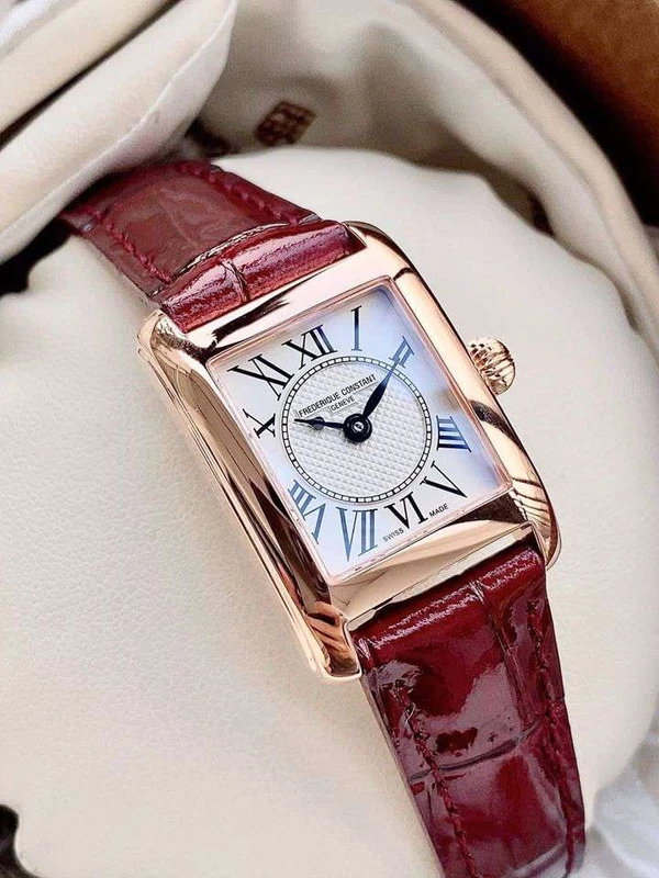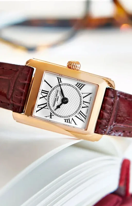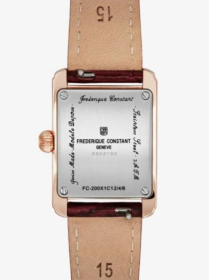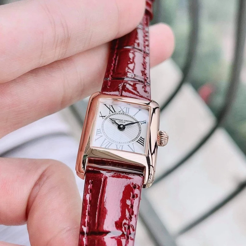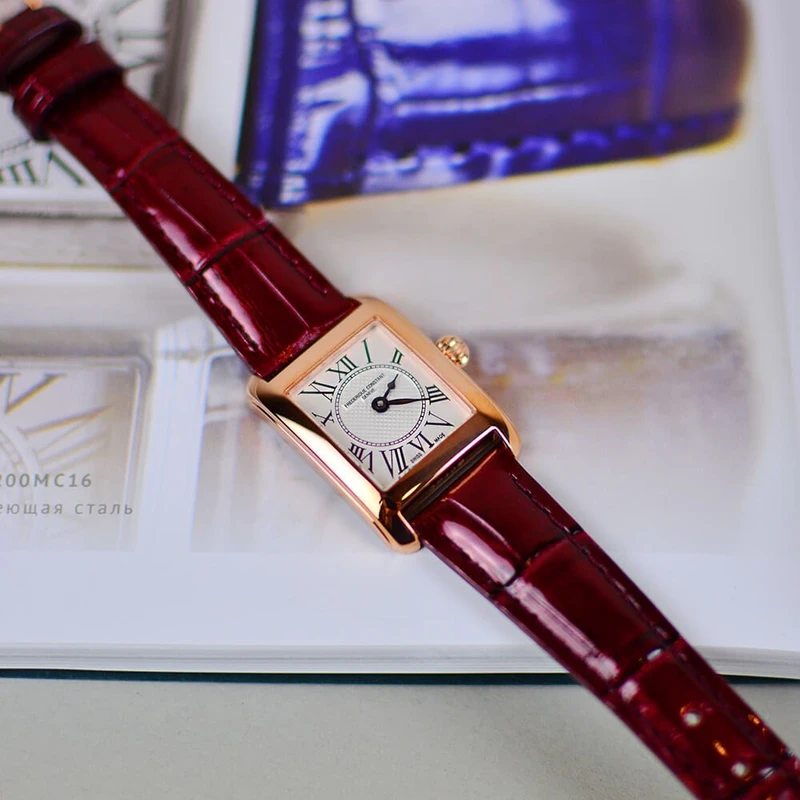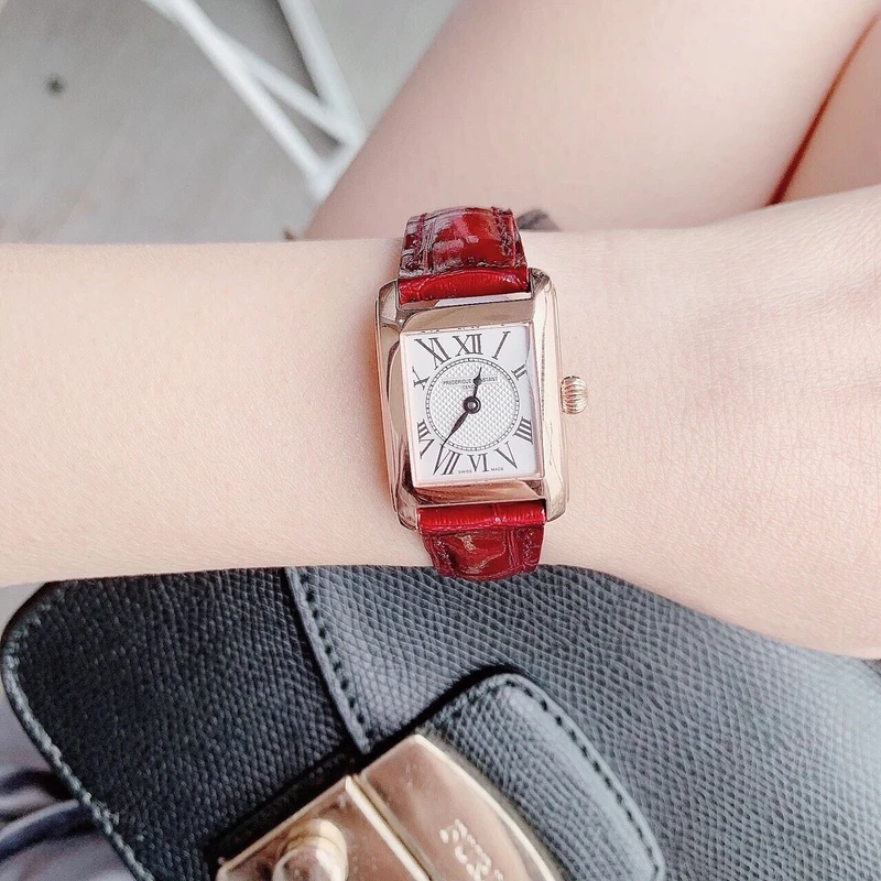 FC-200MC14 שעון לנשים של פרדריק קונסטנט | דגם מלבני רוז גולד בלוח רומי | רצועת עור אדומה מיוחדת | מלאי מוגבל כולל שנתיים אחריות יבואן רשמי | Frederique Constant Classics Carree Ladies FC-200MC14