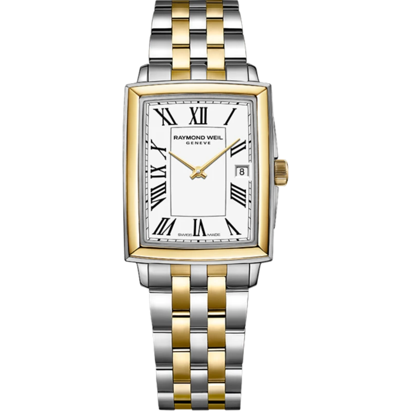 5925 STP 00300 שעון יוקרתי של ריימונד ווייל מסדרת טוקטה החדשה לאישה | דגם משולב זהב בלוח רומי | Raymond Weil Toccata Quartz Watch | 5925-STP-00300