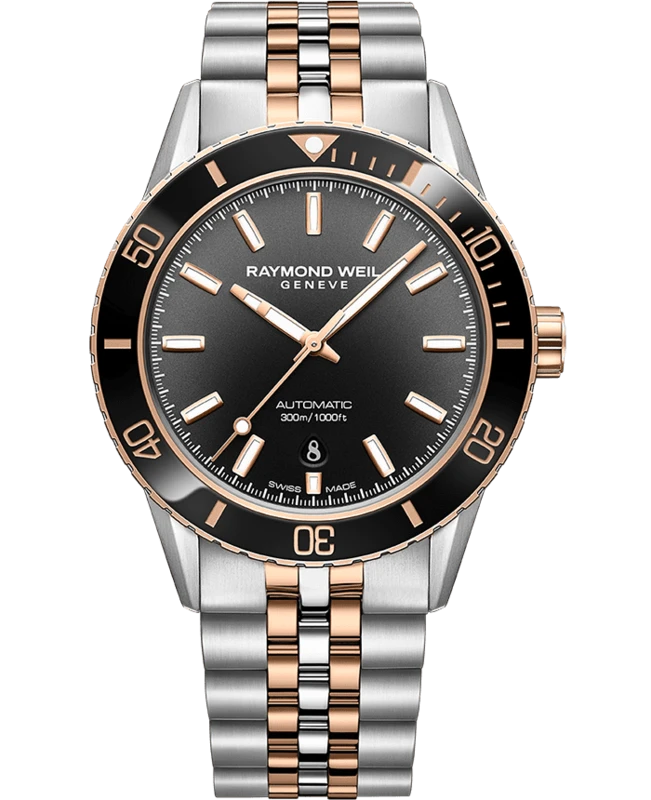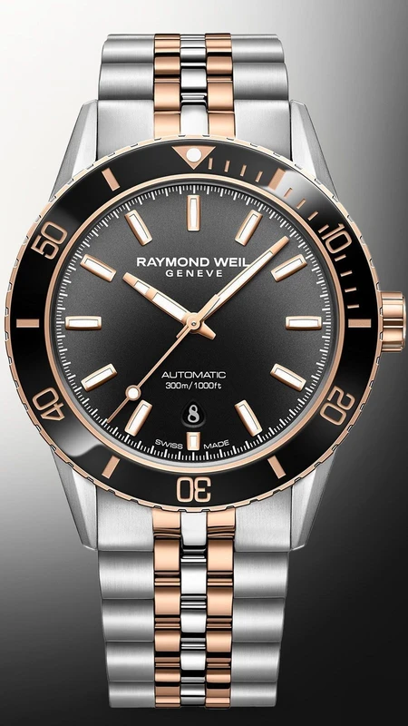 2775 S51 20051 שעון ריימונד וייל מסדרת פרילנסר דייבר החדשים | דגם רוז גולד באזל קרמי | מנגנון אוטומטי | סוגר פטנט | 300 מטר עם שנתיים אחריות יבואן רשמי | Raymond Weil Freelancer Diver 2775-S51-20051