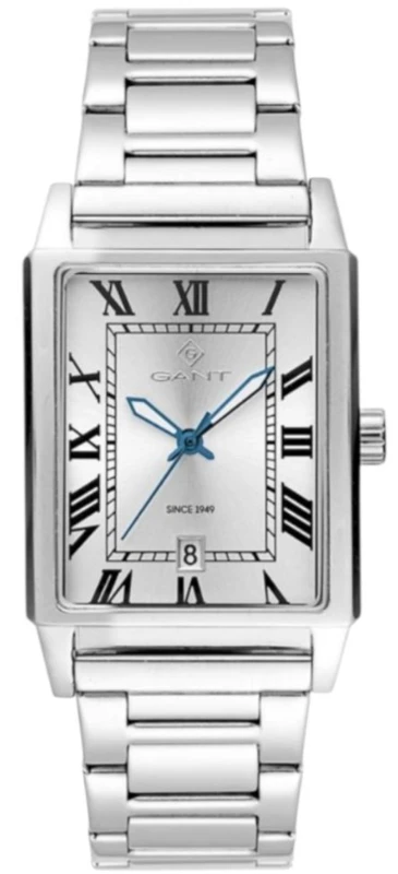 G197011 שעון גאנט יבואן רשמי | דגם מלבני אלגנטי אופנתי לגברים | רצועת פלדה כסופה | שעון אלגנטי ויוקרתי | GANT dress watch for MENS with Stainless Steel band G197011