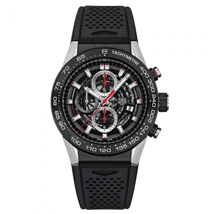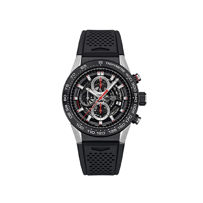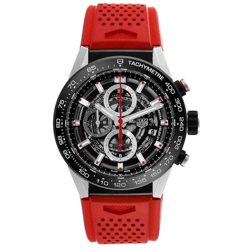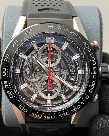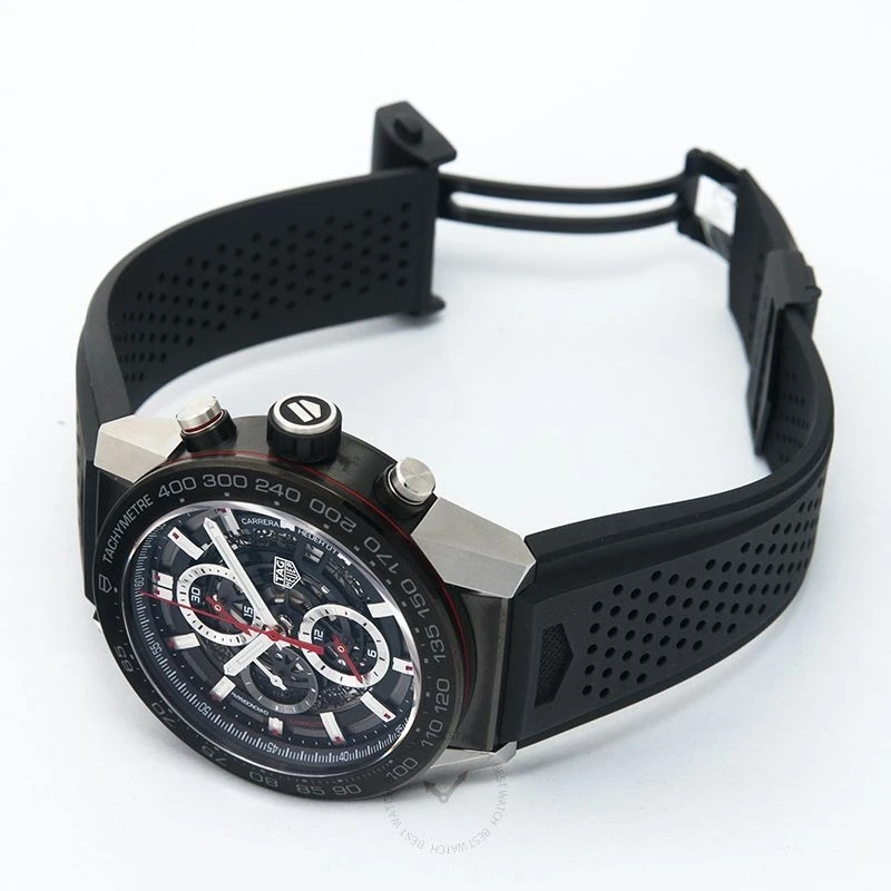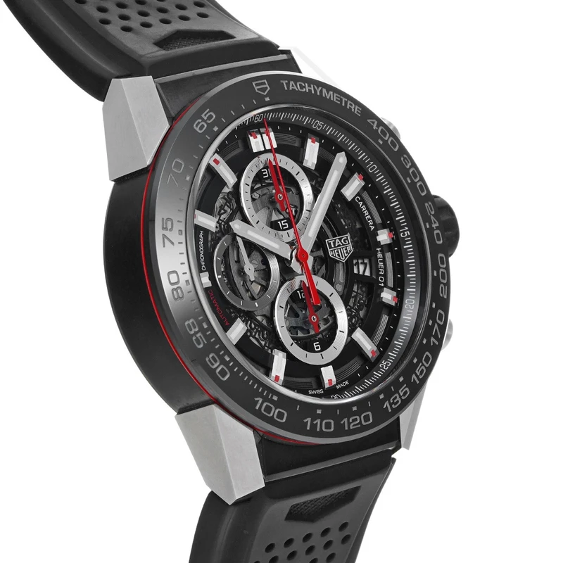 CAR2A1Z.FT6044 שעון יוקרה יד 2 של טאג הויאר לגברים | שעון כמו חדש שמור אוטומטי סקלטון | סט מלא כולל 2 רצועות ואחריות | Tag Heuer Carrera Calibre Heuer 01 Automatic Skeleton Dial Watch CAR2A1Z.FT6044