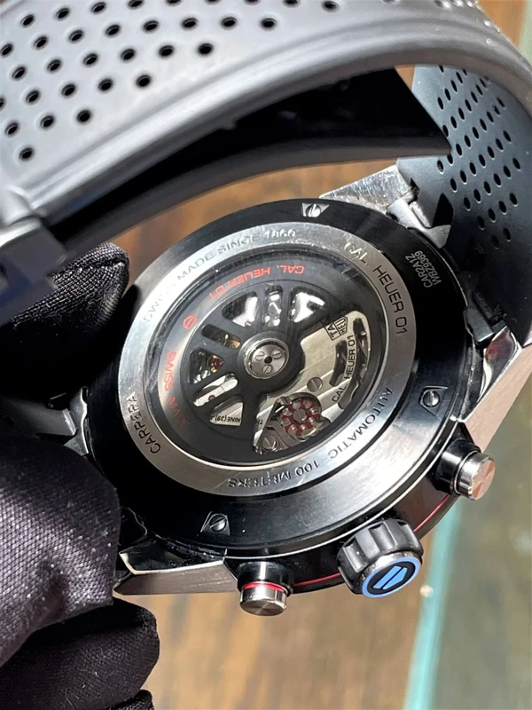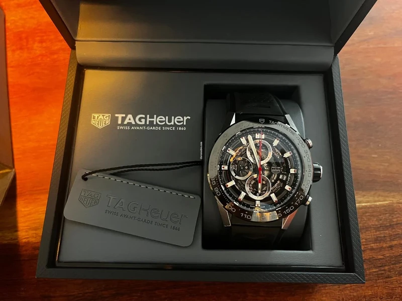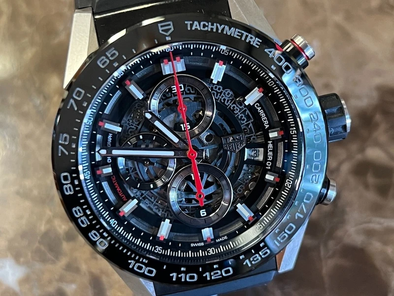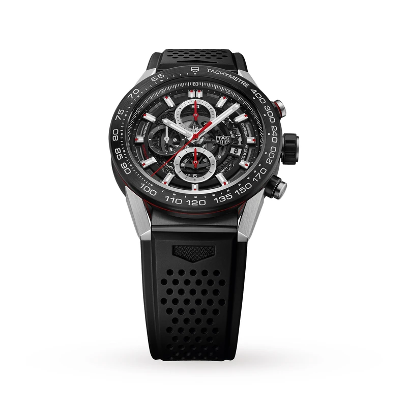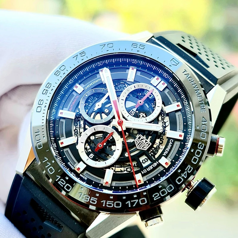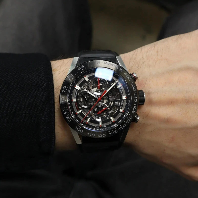 CAR2A1Z.FT6044 שעון יוקרה יד 2 של טאג הויאר לגברים | שעון כמו חדש שמור אוטומטי סקלטון | סט מלא כולל 2 רצועות ואחריות | Tag Heuer Carrera Calibre Heuer 01 Automatic Skeleton Dial Watch CAR2A1Z.FT6044