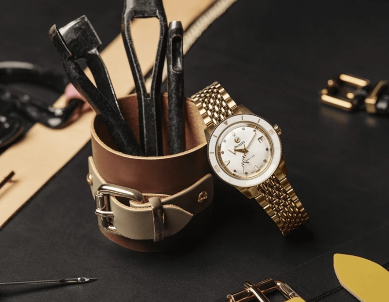 גוף השעון (CASEׂ) : סטיינלס סטיל זהב ובאזל קרמי לבן