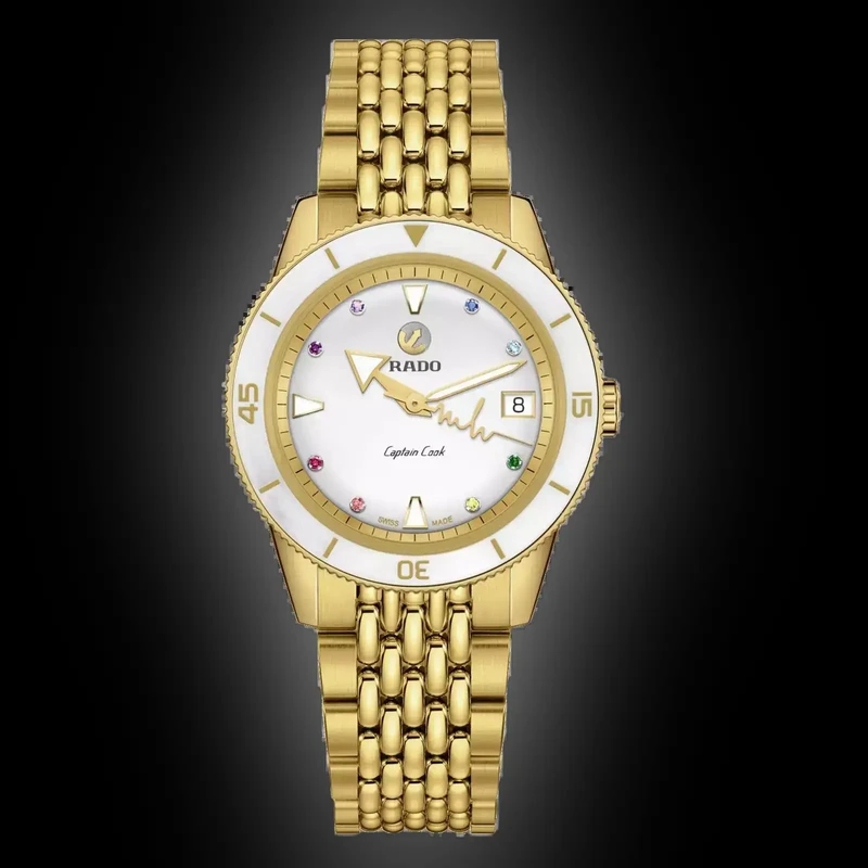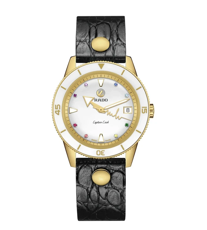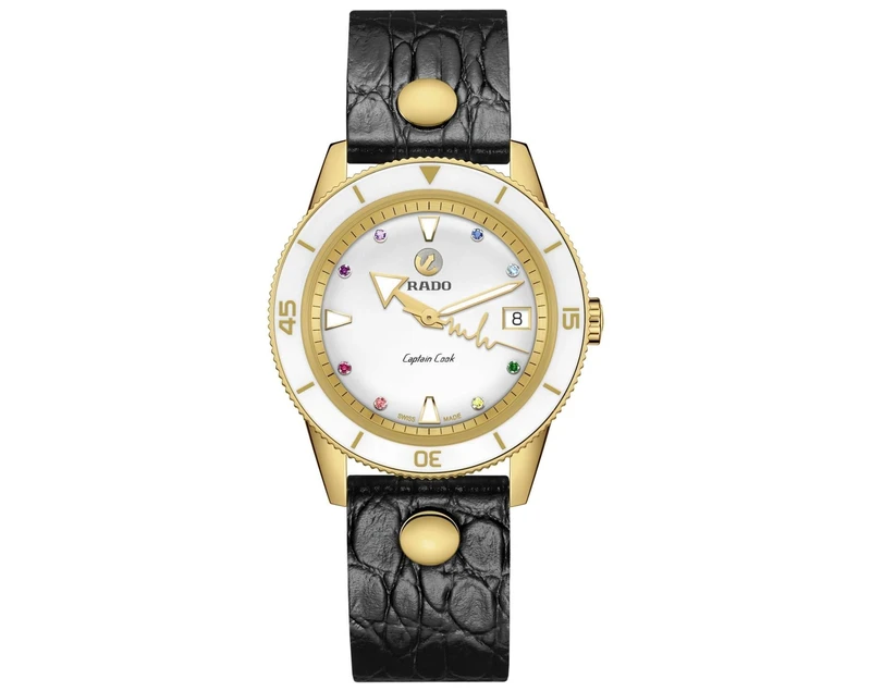R-61173570 שעון ראדו יבואן רשמי מסדרת קפטן קוק לנשים | דגם במהדורה מיוחדת עם 3 רצועות מתחלפות ומנגנון אטומטי ו 5 שנות אחריות | 8 יהלומים בלוח Rado Captain Cook X Marina Hoermanseder Heartbeat R3211770