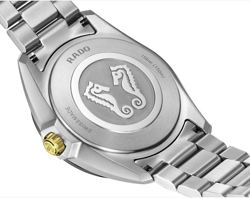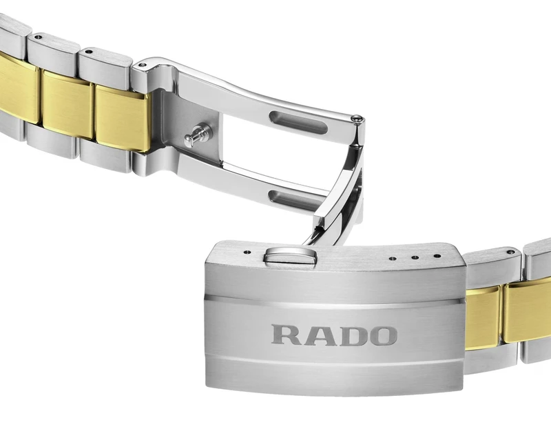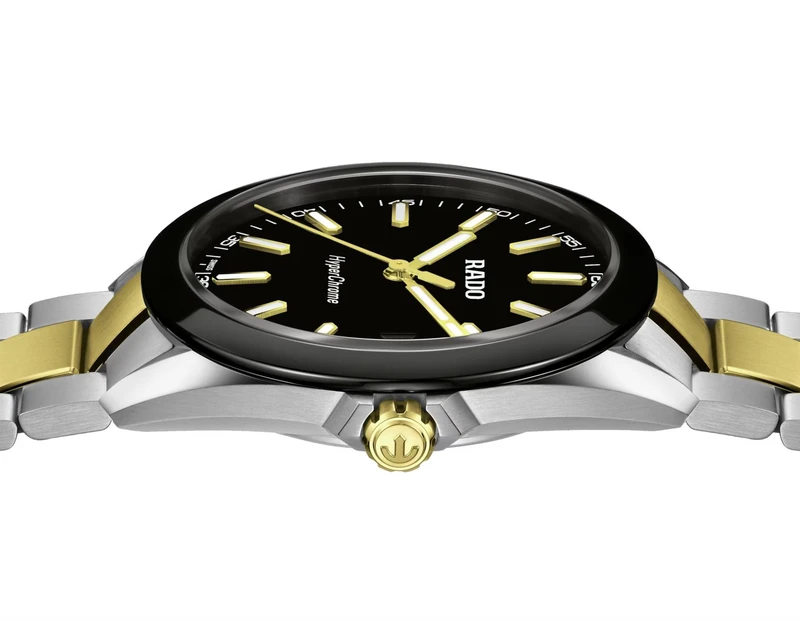 R-62803015 | R32280153 שעון ראדו יבואן רשמי דגם חדש מסדרת הייפרכרום משולב זהב בלוח שחור זרחני | 150 מטר עם 5 שנים אחריות |Rado HyperChrome Quartz 41.5mm Black Dial Two Tone Bracelet Watch R32280153