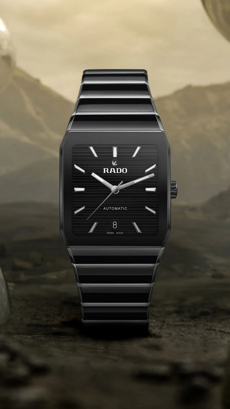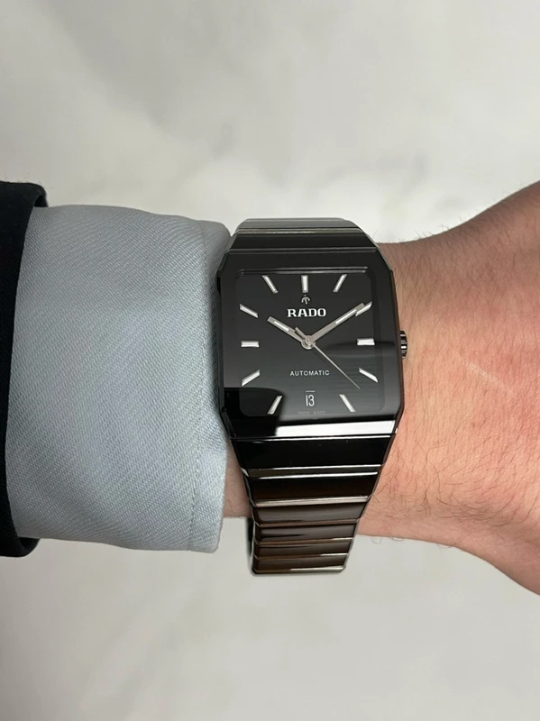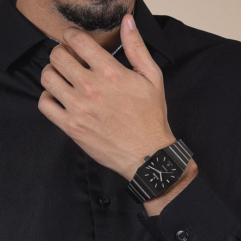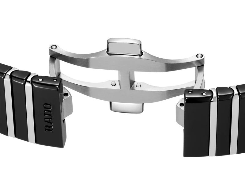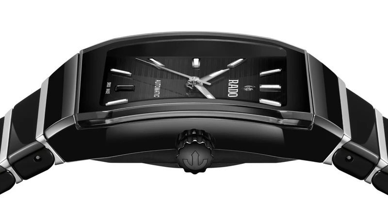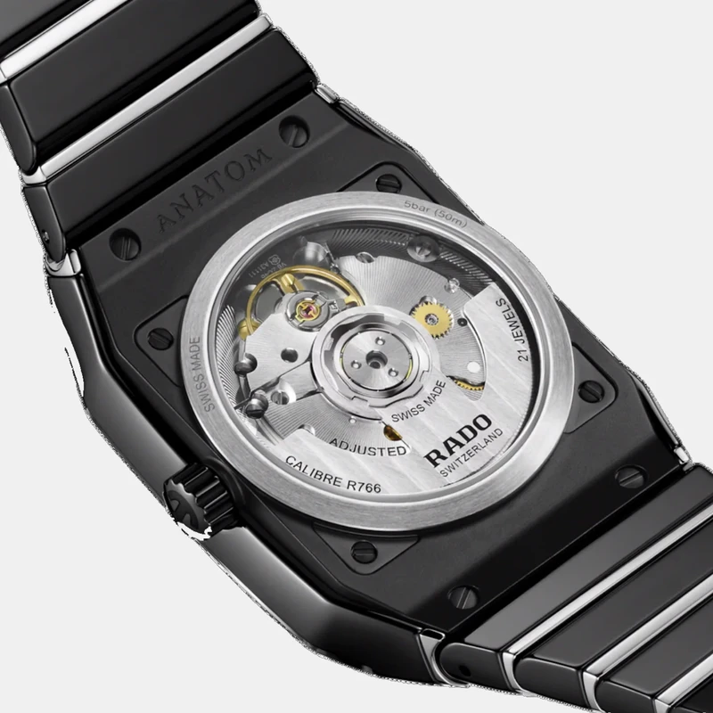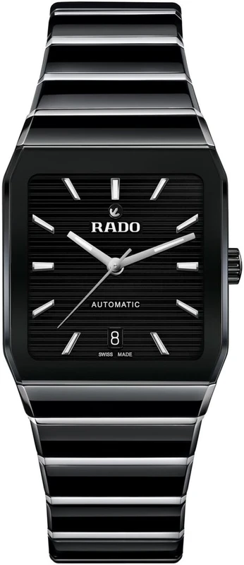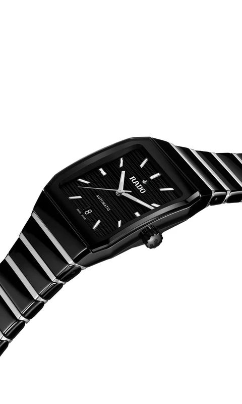 R-62013015 | R10201152 שעון ראדו יבואן רשמי יוניסקס מסדרת אנטום | דגם חדש קרמי מלבני משולב פסים בכסף | מנגנון אוטומטי עם 5 שנות אחריות | Anatom Automatic High-Tech Ceramic Watch R10201152