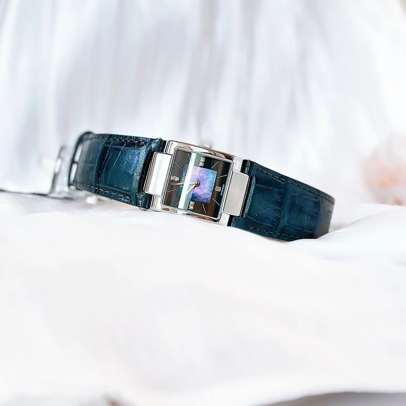 צבע לוח השעון : שחור פנינה - משובץ 6 יהלומים
