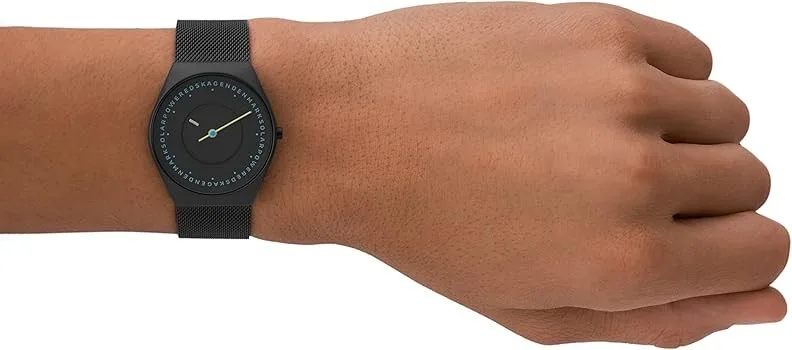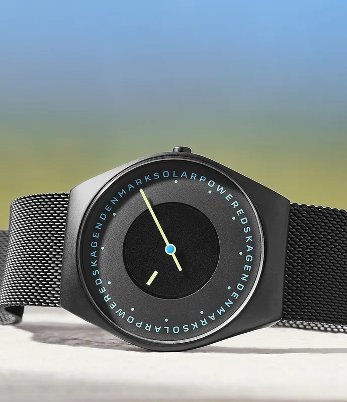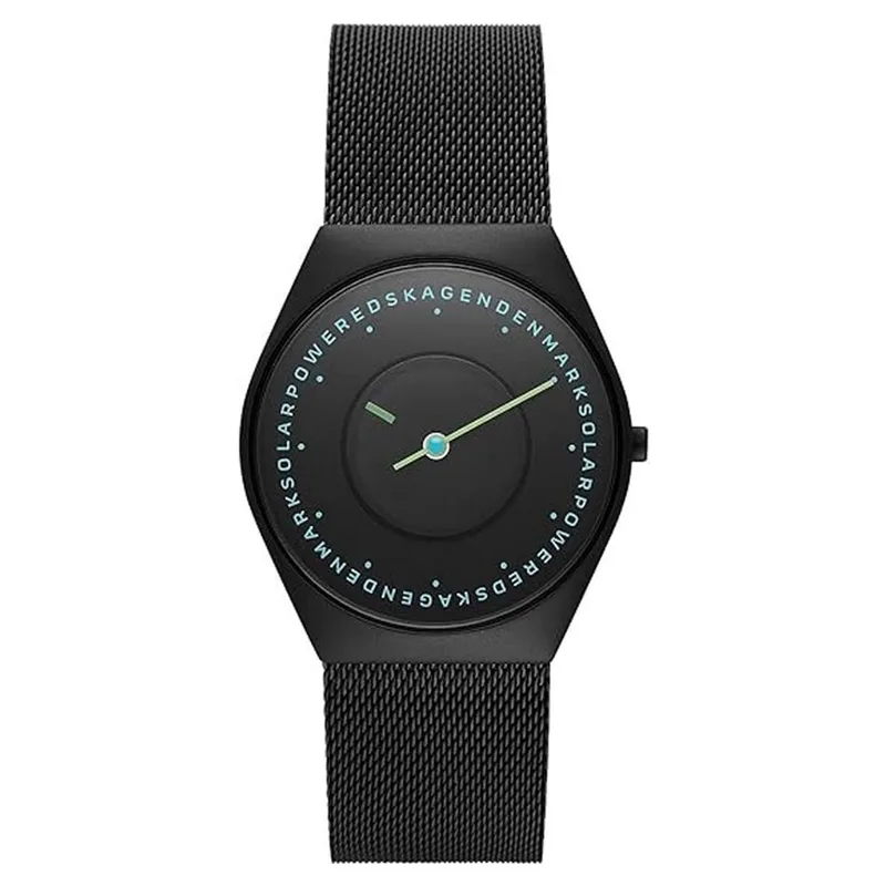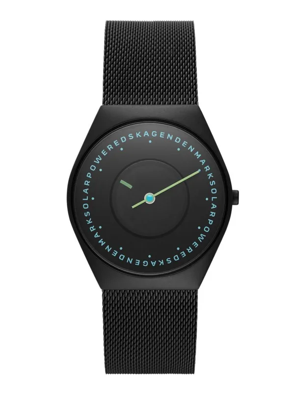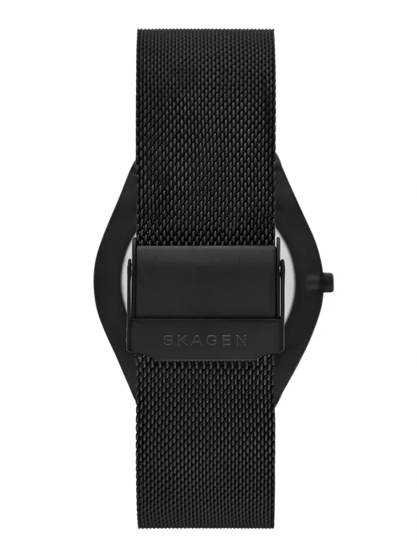 SKW6874 שעון סולארי של סקאגן לגברים | דגם אופנתי בלוח מרשים ומיוחד | רצועת רשת וקייס מושחרים | שנתיים אחריות יבואן רשמי | Skagen Grenen Solar Powered SKW6874 men's watch