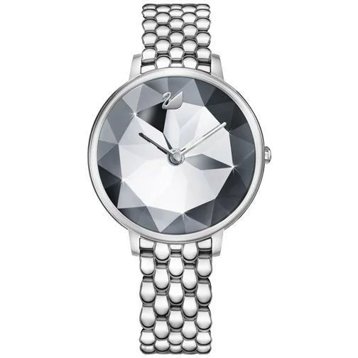 407355 שעון יד סברובסקי לנשים | דגם כסוף בלוח כסוף | זכוכית מקומרת בצורת אבן | שנתיים אחריות יבואן רשמי |Crystal Lake Quartz Silver Dial Ladies Watch 5416017 by Swarovski