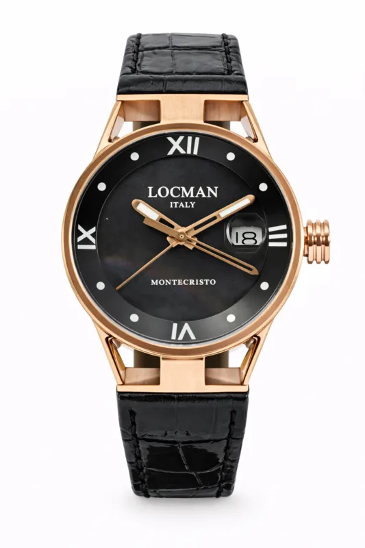 512-1113MK-MOP-PT שעון יוקרתי אלגנטי לאישה של לוקמן איטליה | מנגנון שווצרי עם זכוכית ספיר | רצועת עור | רוז גולד בלוח פנינה שחור מיוחד | Montecristo Lady Movement Three Hands Quartz 512-1113MK-MOP-PT
