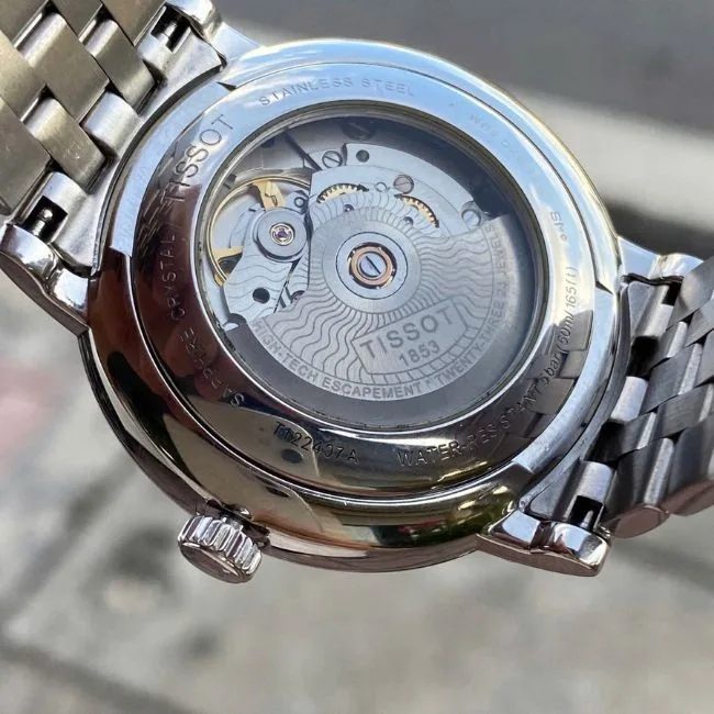 T122.407.11.031.00 שעון טיסו לגבר פאוורמטיק 80 | לוח כסוף עם תאריך | דגם קלאסי אלגנטי עם גב אחורי שקוף | מלאי מוגבל |Tissot T-Classic 40mm Mens Watch T1224071103100