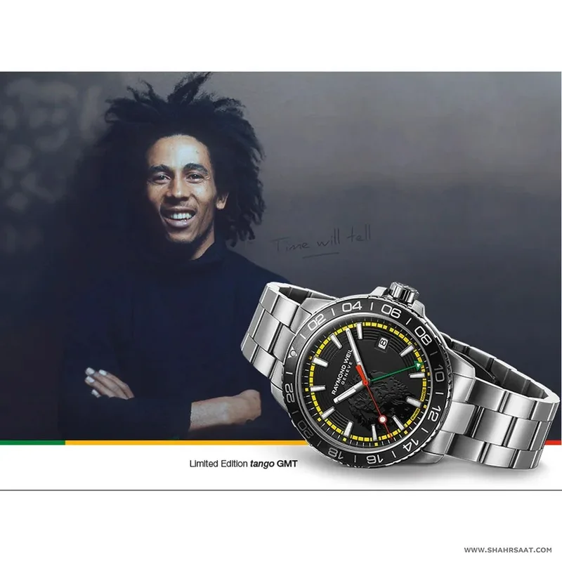 8280-ST1-BMY18 שעון ריימונד ווייל מיוחד במהדורה מוגבלת לזמר האגדי בוב מארלי | דגם GMT בלוח מיוחד | מלאי מוגבל | שנתיים אחריות יבואן רשמי בישראל | Raymond Weil Tango GMT Bob Marley Limited Edition