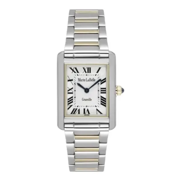 MLB.613.311 שעון מלבני לנשים של מרי לאבאל | דגם משולב זהב עם ספרות רומיות | מנגנון שווצרי | שנתיים אחריות | Marie La Belle Watch – premium women’s timepiece MLB.613.311