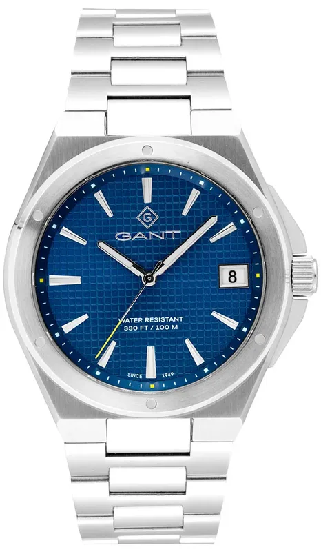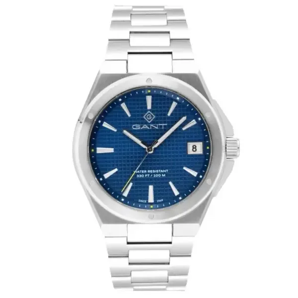 G192003 שעון גאנט יבואן רשמי | דגם אלגנטי ספורטיבי לגבר | רצועת פלדה לוח כחול מיוחד | שנתיים אחריות | GANT Marshfield Silver Stainless Steel Bracelet - G192003