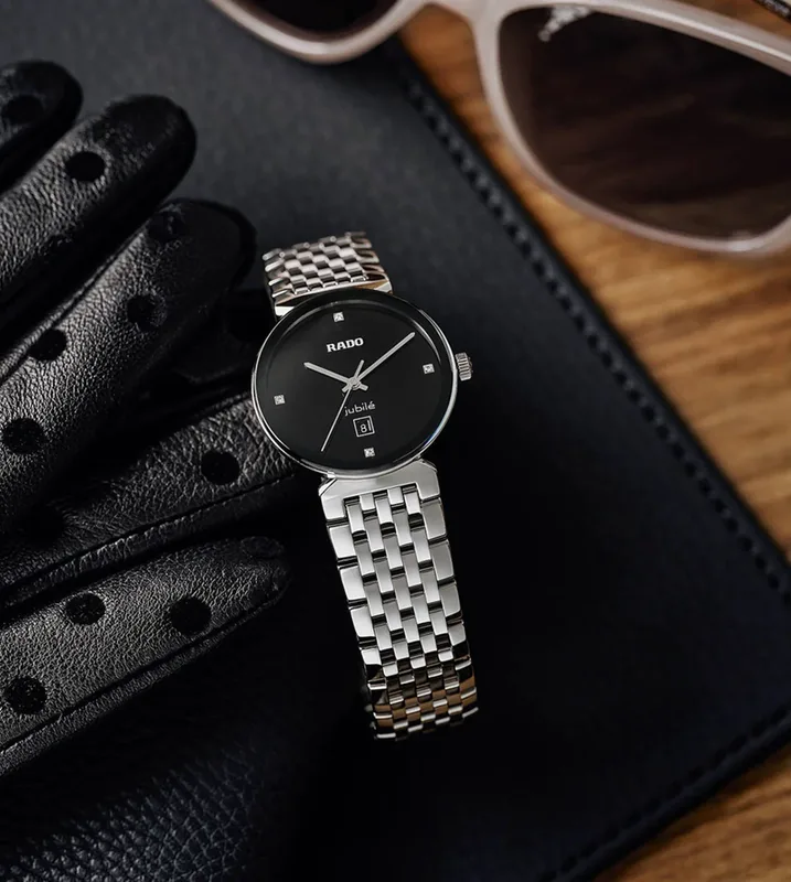 R-39134071 שעון ראדו יבואן רשמי - יד 2 לנשים | דגם מסדרת פלורנס החדשה | לוח שחור משובץ 4 יהלומים | השעון בן 8 חודשים כמו חדש כולל כרטיסים וקופסא | Rado Florence 30mm Ladies Watch R48913713