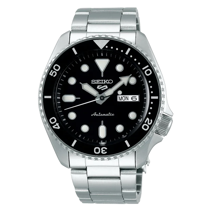 SRPD55 שעון סייקו 5 אוטומטי יבואן רשמי | דגם ספורטיבי אלגנטי בלוח שחור זרחני | גב שקוף | אחריוטת יבואן רשמי בישראל רויאלטי | New Seiko 5 Sports SRPD55 Automatic Black Dial