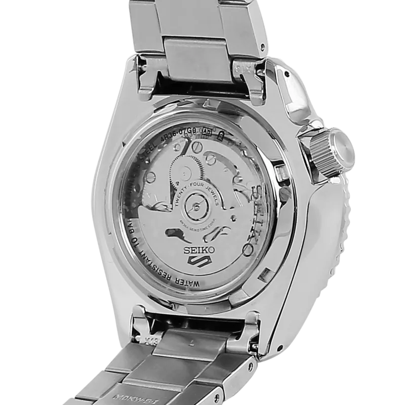 לוח השעון מציג את התאריך והיום בשבוע. השעון בעל מנגנון סייקו אוטומטי 4R36 הנטען מתנועת היד ומאפשר גם טעינה על ידי סיבוב הכתר.