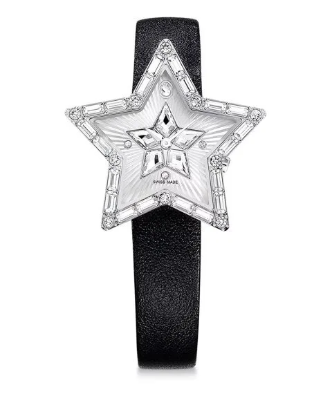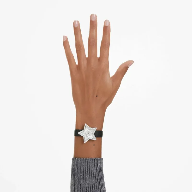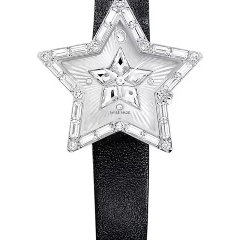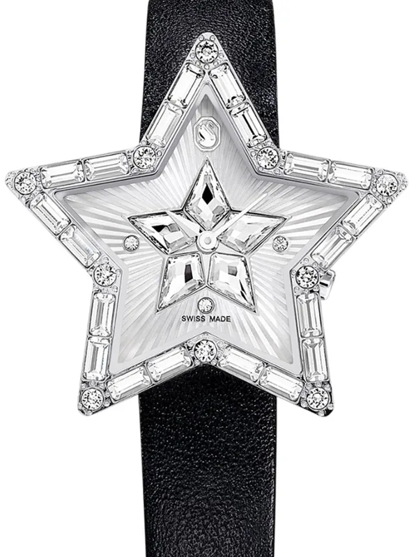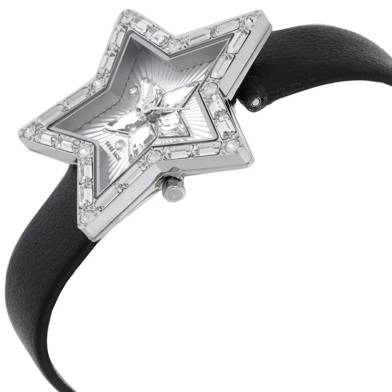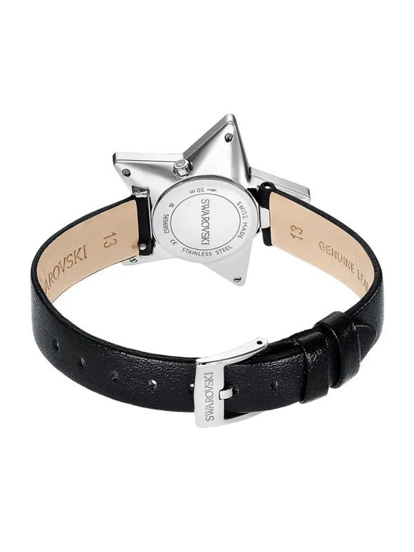 5656952 שעון מיוחד לנשים של סברובסקי | דגם ברצועת עור | צורת כוכב מיוחד משובץ אבני סברובסקי | שעון אופנתי שווצרי | Symbolica Star Quartz Crystal Silver Dial Ladies Watch 5656952 by Swarovski